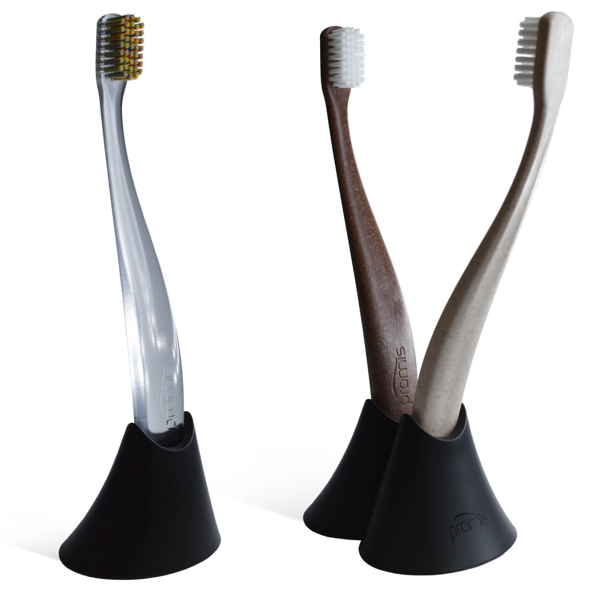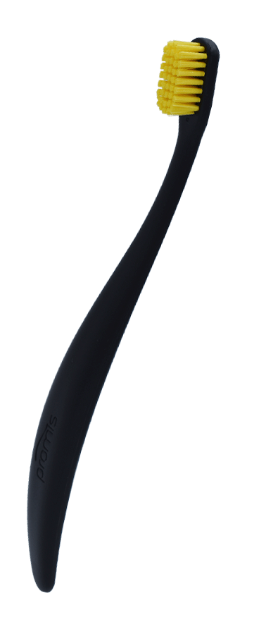 Ročaj naše ščetke promis je izdelan iz bioplastike, ki vsebuje biopolimere, lignin, naravne smole, naravne voske, naravna olja, celulozo, organske aditive, naravna ojačitvena vlakna in majhno količino plastike za zagotovitev ustrezne stabilnosti. Zaradi te kombinacije je ščetka promis popolna trajnostna alternativa običajnim plastičnim zobnim ščetkam.